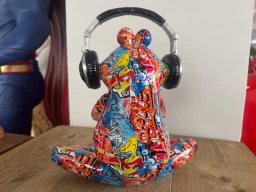 Kikker Yoga Koptelefoon Graffiti H29cm