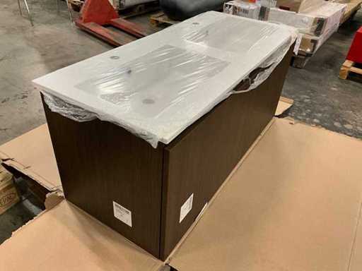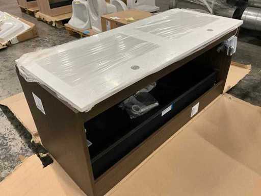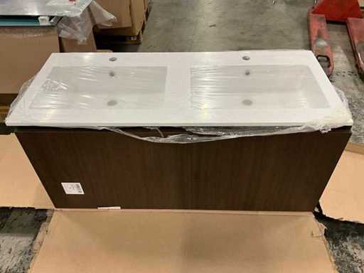 Onderkast voorzien van 1 lade, compleet met dubbele composiet wastafel en spiegel 120 x 60cm