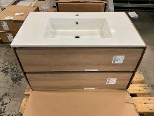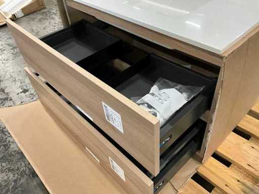 Onderkast voorzien van 2 laden, compleet met composiet wastafel en spiegel 90 x 70cm
