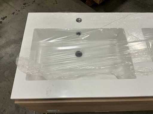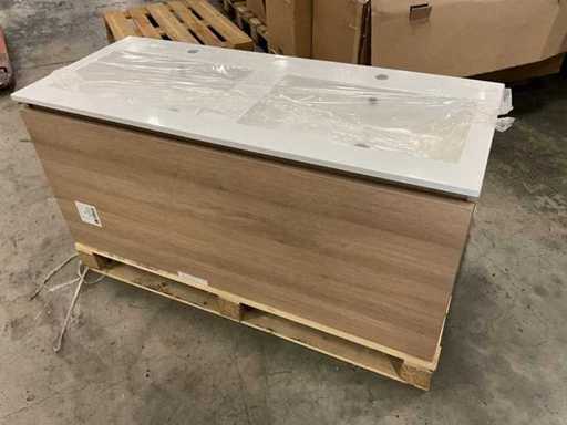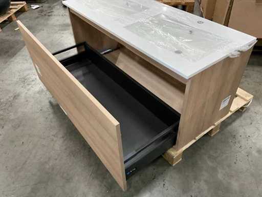 Onderkast voorzien van 1 lade, compleet met dubbele composiet wastafel en spiegel 120x 70cm
