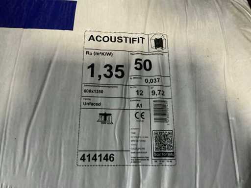 Circa 9,72 m2 per pak. 12 stuks per pak. Rd waarde 1,35