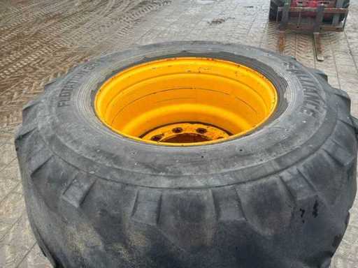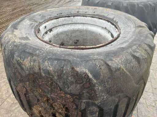 2X Alliance Flotation 33E 700/40/22.5 met velg en 2x Trellerborg Twin 423 710/40/22.5 waarvan 1x voorzien van velg 1x binnenband lek