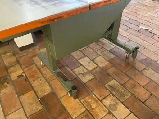Houten werkblad afmetingen circa: 1050x1250 mm. Mobiel.