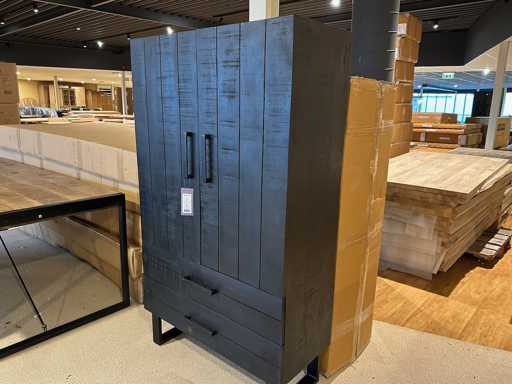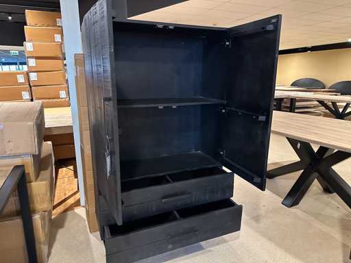 Opbergkast - zwart mangohout - zwart metalen onderstel