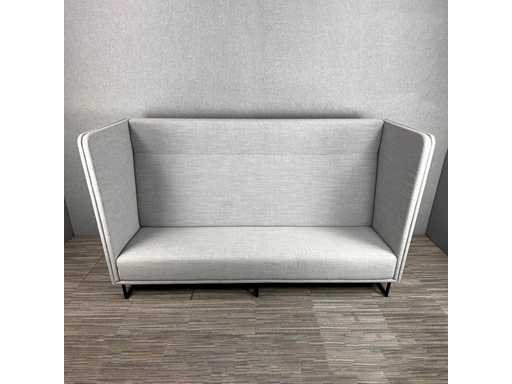 LANDE 1st Class hoge rug 3-zitsbank in lichtgrijze stof, ontworpen voor optimaal comfort en akoestische isolatie. Met gevoerde wanden, slank frame en strakke bekleding, ideaal als wachtruimtebank, vergaderplek of loungebank. Creëer privacy of gezellige zitarrangementen door banken te koppelen of tegenover elkaar te plaatsen.