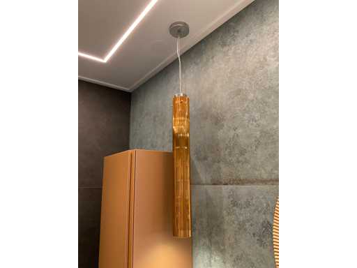 diameter 78 cm; hanglamp lengte 60 cm diameter 8 cm; LET OP: door koper zelf ter plaatse nog te demonteren; zonder de getoonde accessoires
