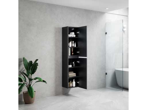 160cm Design Kolomkast Badkamermeubel - Kleur: Zwart Eik - Afm. B40xD30xH160cm - de Kolomkast bevat 2 deuren en is uitgevoerd met een soft close systeem - bevestigingsbeugels incl.