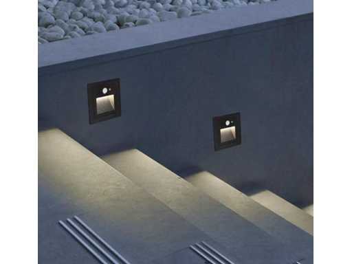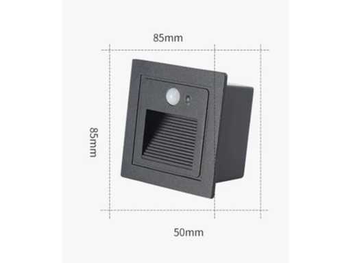 10 x LED-trapverlichting met sensor (LY03) – Inbouw vierkant model – Vermogen: 3W – LED-type: COB – Lichtstroom: 270 lumen – Kleurtemperatuur: 3000K (warm wit) –Afmetingen: 85 x 85 x 45 mm – Hoogwaardig aluminium – Stijlvolle antraciet afwerking – Levensduur: 30.000 uur – Spanning: 85-265V (50/60Hz) – Beschermingsgraad: IP65 (volledig stofdicht en beschermd tegen waterstralen) –Geschikt voor gebruik binnen en buiten - Automatische bewegingsdetectie voor handige en veilige verlichting - Inclusief lichtbron - Eenvoudige inbouwinstallatie met meegeleverde kit.