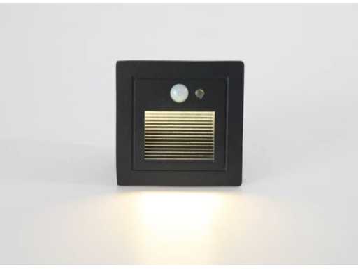 LED Trapverlichting met Sensor – 3W – 270 lm – 3000K WitWarm – IP65 Waterdicht – Inbouw Vierkant – Antraciet (LY03) (x10)