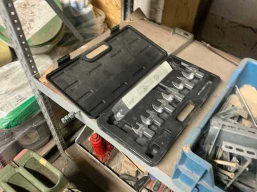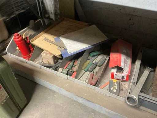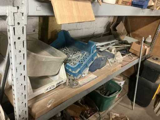 Met inhoud. Inclusief houten vakkenkast met bevestigingsmaterialen