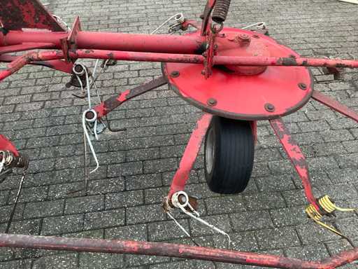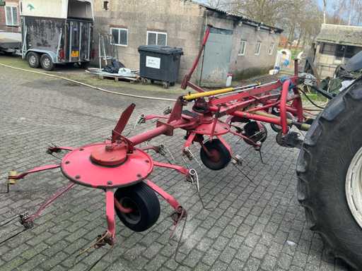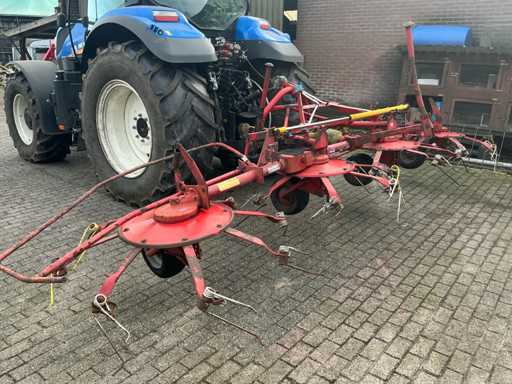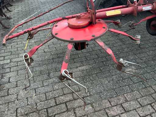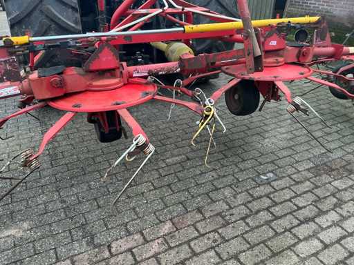 Voorzien van: Gedragen Lely Lotus hooischudder, 4 rotoren, werkbreedte ca. 6,0–6,5 m, aftakas (PTO) aangedreven, driepuntshef, individuele loopwielen per rotor, geschikt voor het schudden en spreiden van hooi/gras.