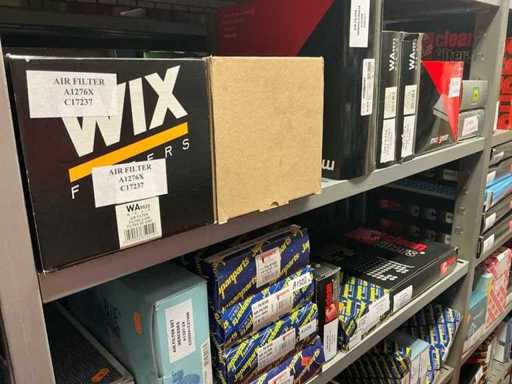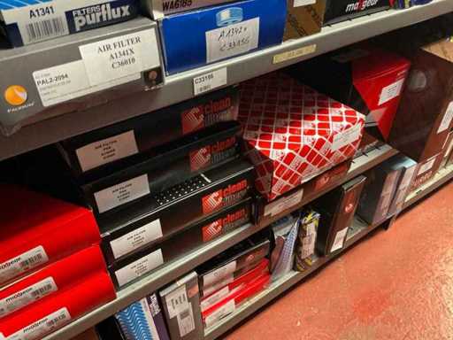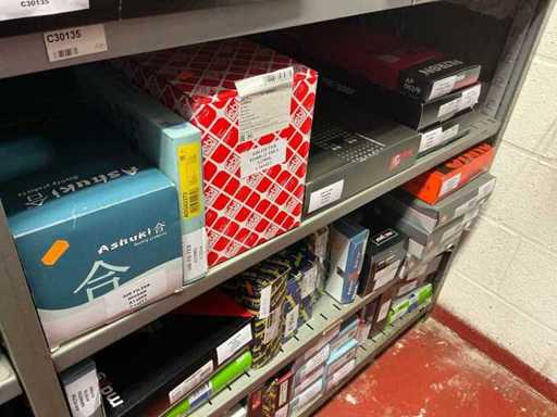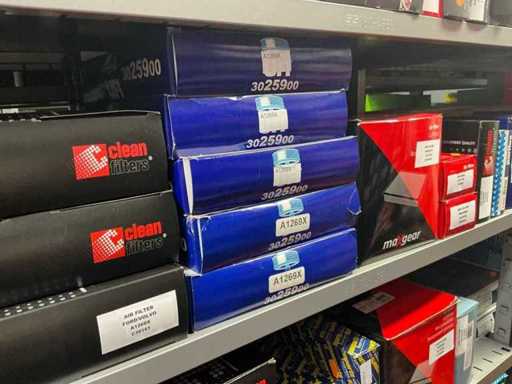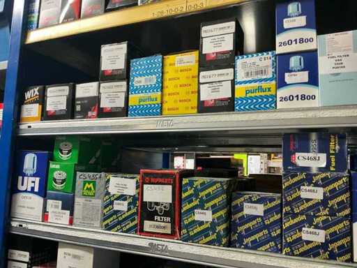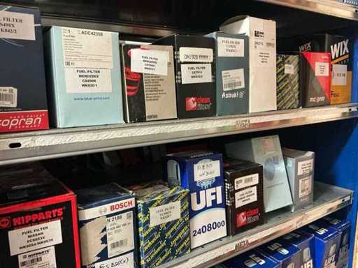 Bestaande uit 80 oliefilters, 140 brandstoffilters en 125 luchtfilters. Van courante automerken. Nieuw in de doos.