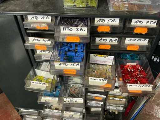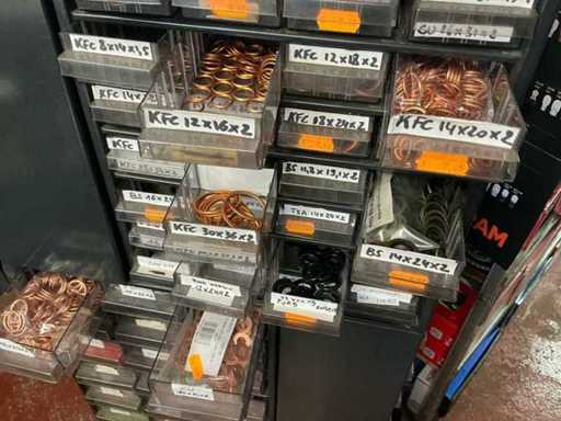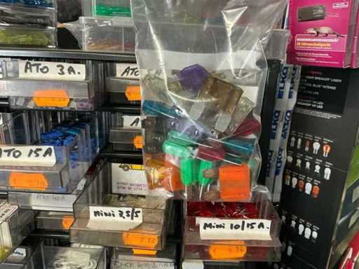 Lot zekeringen, batterijen en koperen afdichtingsringen