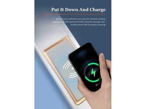 Zero‑gravity, Full body air‑pressure massage met instelbare intensiteit, SL‑Track waarbij de massage manipulator van nek naar rug, taille en billen beweegt, schouderpositie‑detectie, been‑airbags en voetmassage, Bluetooth HIFI‑surroundsound, been‑ en rug verwarming, 12 automatische modi + 8 handmatige modi, Thaise stretch, AI‑spraakbesturing, luxe stijl armsteun met quick buttons + USB‑opladen, gezondheidsmonitoring (hartslag en bloeddruk), telefoon draadloos opladen, versterkte kunststof beenstructuur, telefoon/iPad‑houder, afstandssensorfunctie (joystick‑knop), verbeterde capacitieve schermcontroller, 240V, afmeting verpakking 116X75X105CM, gewicht inclusief verpakking 77KG, Nieuw in doos.