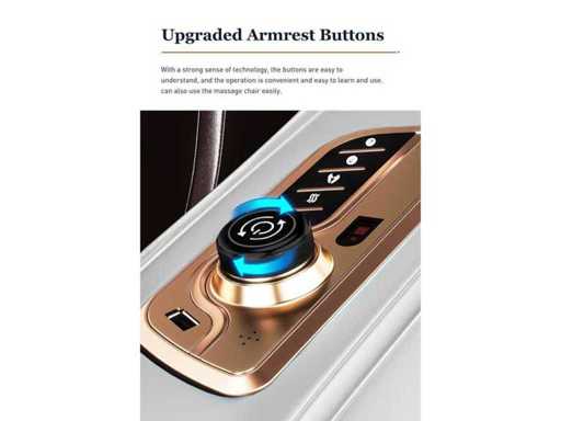 Zero‑gravity, Full body air‑pressure massage met instelbare intensiteit, SL‑Track waarbij de massage manipulator van nek naar rug, taille en billen beweegt, schouderpositie‑detectie, been‑airbags en voetmassage, Bluetooth HIFI‑surroundsound, been‑ en rug verwarming, 12 automatische modi + 8 handmatige modi, Thaise stretch, AI‑spraakbesturing, luxe stijl armsteun met quick buttons + USB‑opladen, gezondheidsmonitoring (hartslag en bloeddruk), telefoon draadloos opladen, versterkte kunststof beenstructuur, telefoon/iPad‑houder, afstandssensorfunctie (joystick‑knop), verbeterde capacitieve schermcontroller, 240V, afmeting verpakking 116X75X105CM, gewicht inclusief verpakking 77KG, Nieuw in doos.