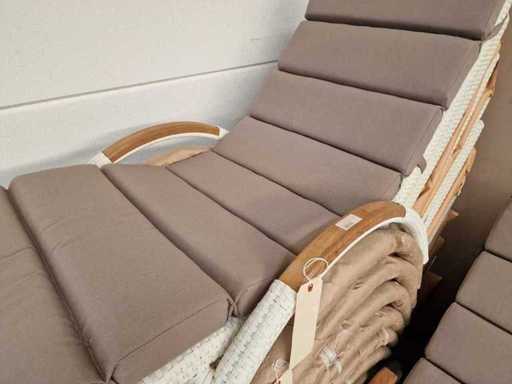 Luxury Lounge Ligbed Wave Wit met Kussen Taupe - Teak Armleuning