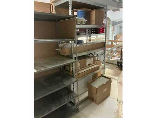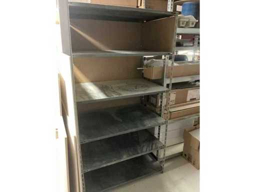 5diverse magazijnrekjes voorzien van diverse leggers (zonder inhoud) met afmeting: 100x50x200 en 90x40x180cm