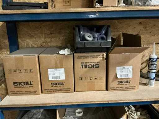 Met inhoud zijnde diverse silicone silcoflex. 589, diverse worsten bont 307, kleine partij handgereedschap, clips, enzovoort