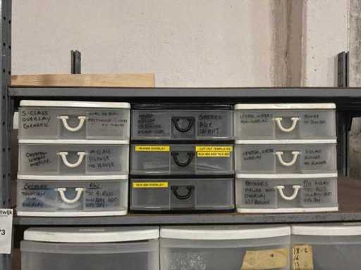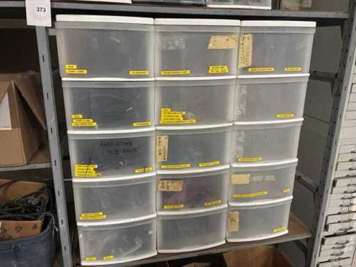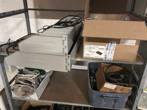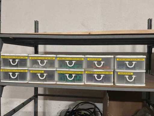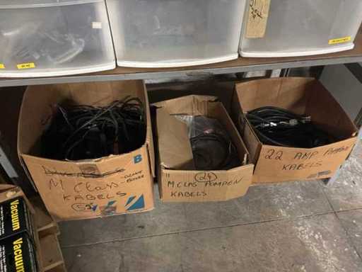 Inhoud bestaande uit pompenkabels, divers plastieken opslagbakjes, …