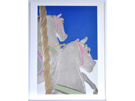 Kleurenzeefdruk - kermispaarden - getekend en genummerd in een oplage van 250 exemplaren - 41,7x54,8 cm - het oplagenummer op de foto kan afwijken