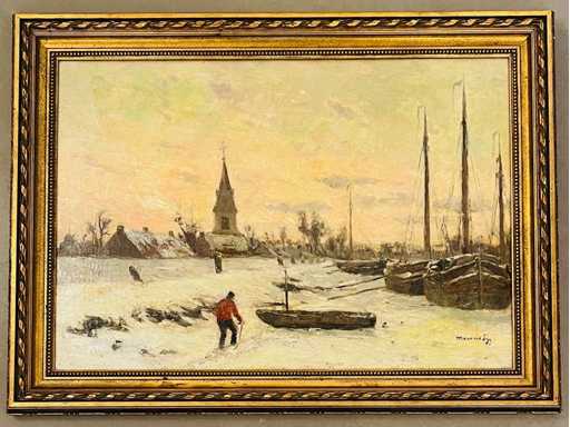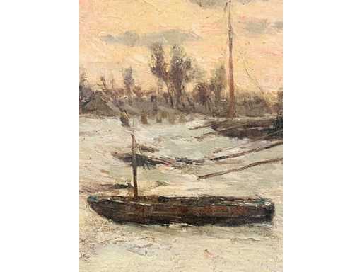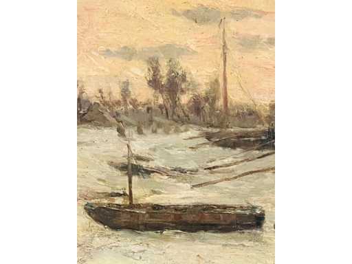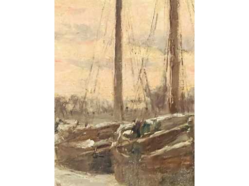 Maurice Sijs - boten aan de kade - olie op paneel