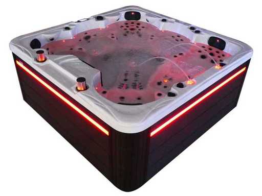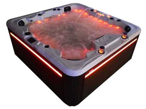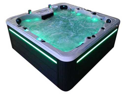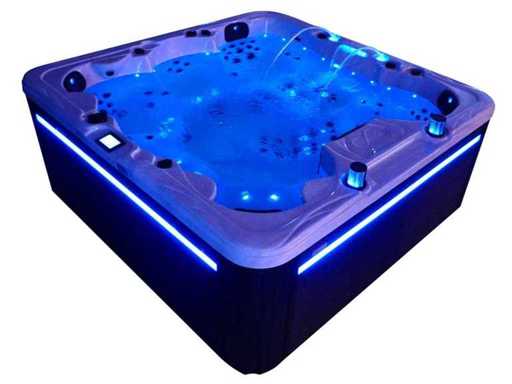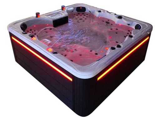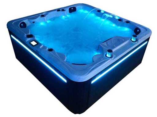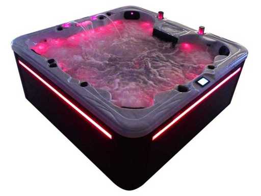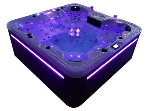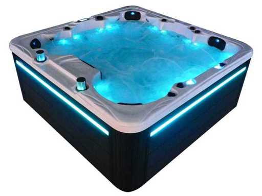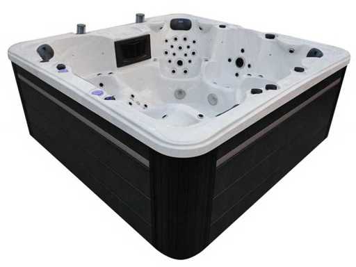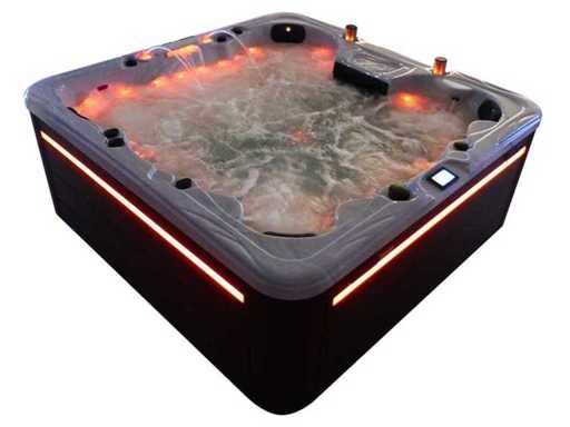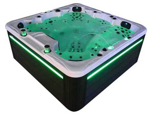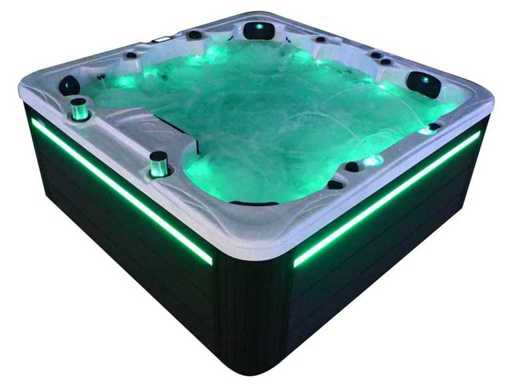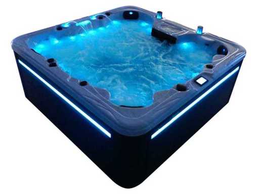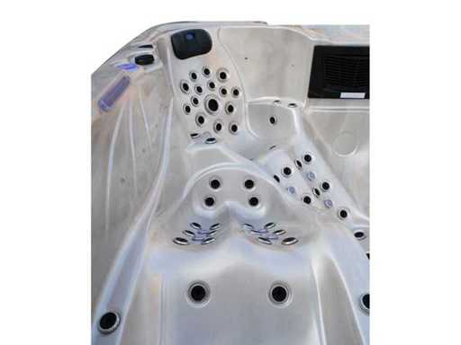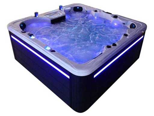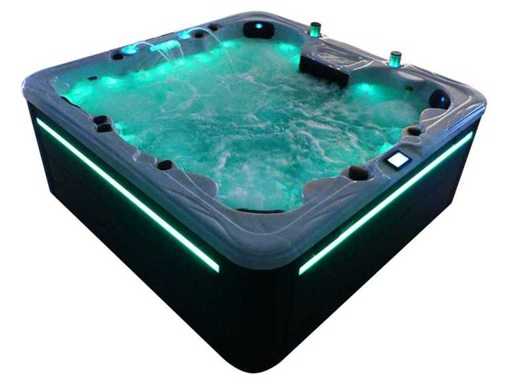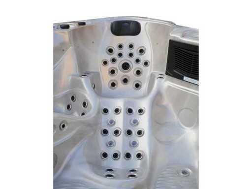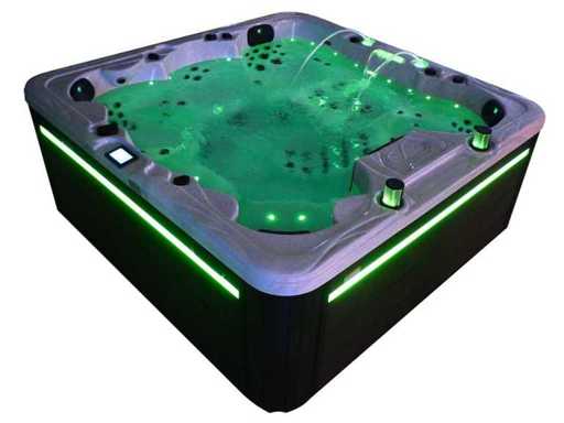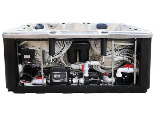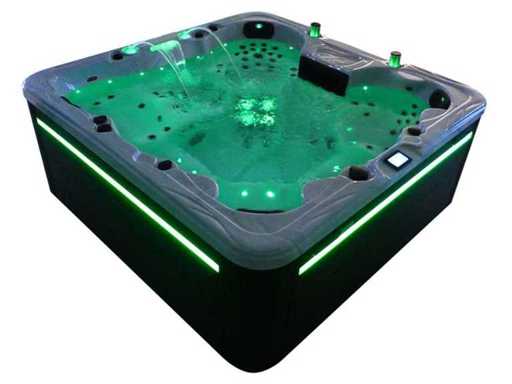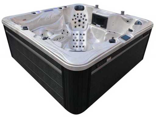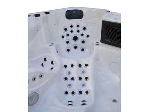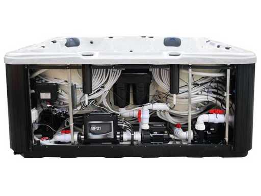 Besturing balboa (Balboa BP21 computer + nieuwste Spa touch 3 display), Balboa heater (3000 watt), Balboa wifi (voor besturing op afstand met de telefoon/tablet), Balboa bluetooth audio, 2 popup speakers met ledverlichting, Subwoofer, kunststof onderhoudsvrije ombouw met ledverlichting rondom in de zijpanelen, 4 massage pompen (3* 3pk, en 1* 400 watt luchtpomp ), 24h circulatiepomp (0,5pk), 4 zitplaatsen en 2 ligplaatsen (4 plaatsen voorzien van hoofdkussen), dikke (zwarte) afdek cover inclusief, totaal 150 rvs stainless steel RVS jets waarvan 16 luchtjets met ledverlichting (diverse maten en verschillende hydro stralen), extra nek en voet massage jets, vorst beveiliging, ozone desinfectie systeem 50mg/h, diverse leds (40 stuks) verlichting langs de waterrand, aroma feeder, 2x pop-up water fontein met ledverlichting, 1x grote waterval met ledverlichting, diverse regelknoppen om de de kracht en de verdeling naar de jets te regelen, 2x oppervlakte en reinigingsfilter, kuip extra dikke foam isolatie (minimaal 45mm) + extra isolatie aan de buitenwanden met folie + 5mm dikke isolatie op de PVC gesloten bdem, waterafvoer, inclusief trapje, Aluminium frame (zeer sterk en roest bestendig) deze spa zit vol met alle mogelijk bestelbare opties, dit betreft een nieuw product in verpakking. De spa kan zowel op 220volt als 380volt worden aangesloten (35a of 49a).