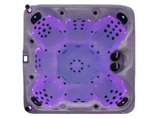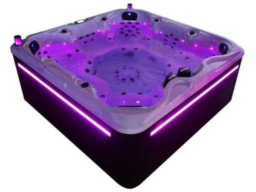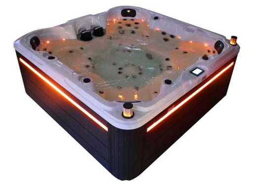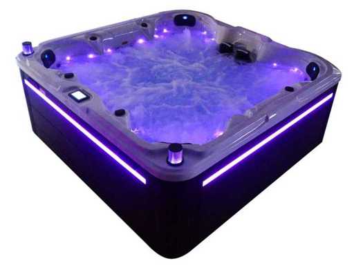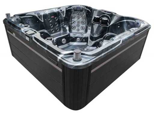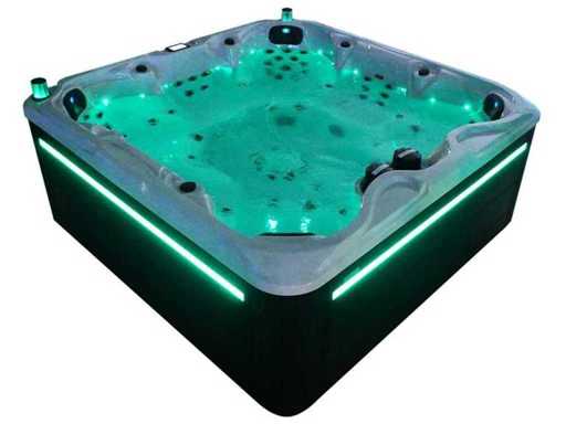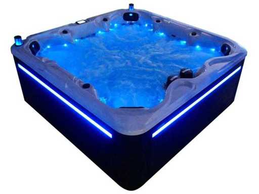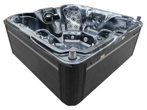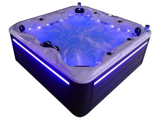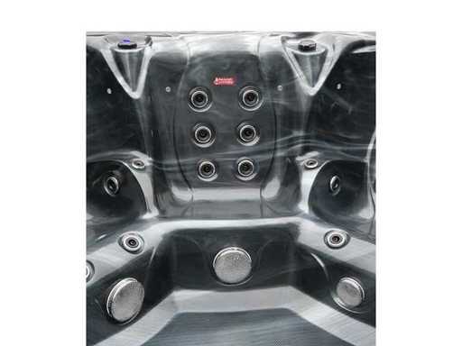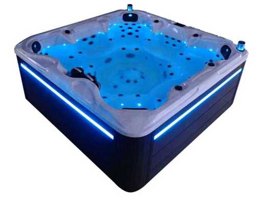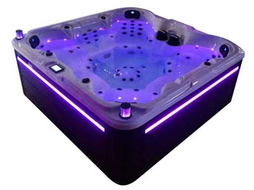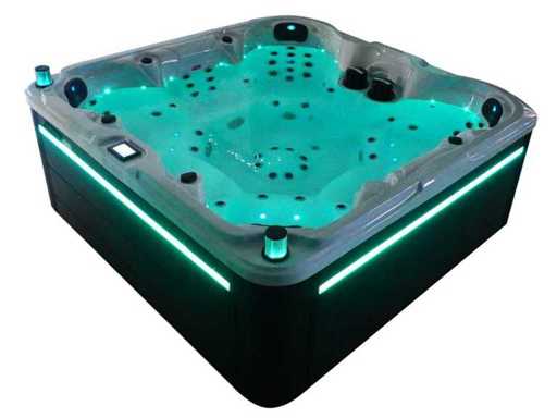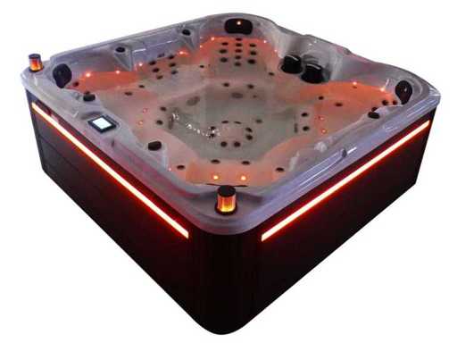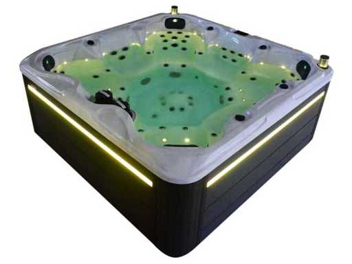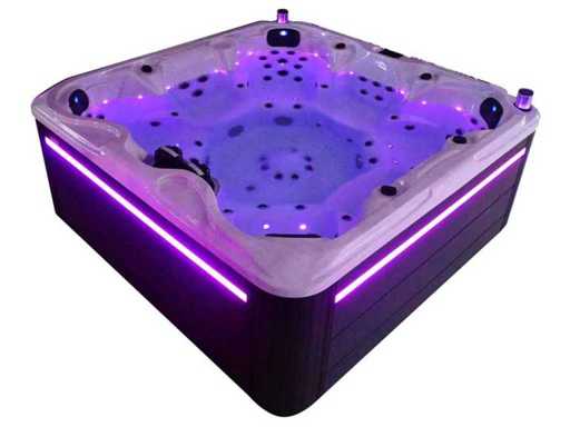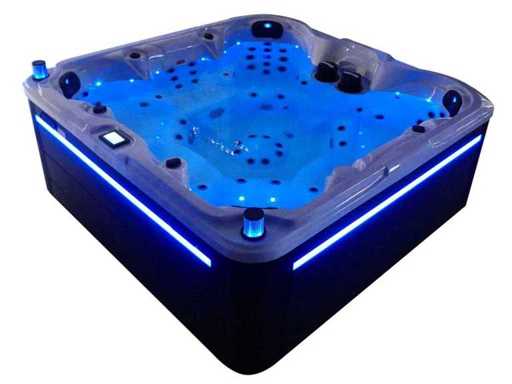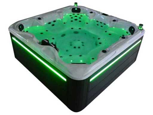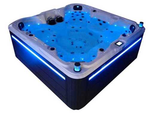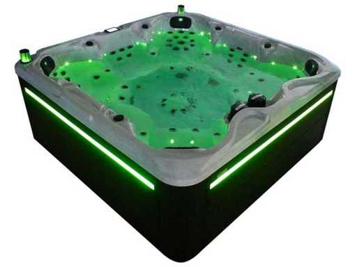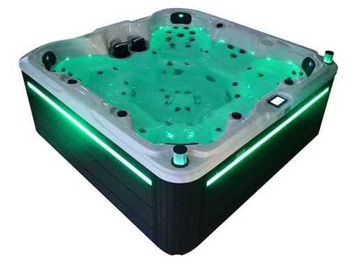 Besturing balboa (Balboa BP21 computer + nieuwste Spa touch 3 display), Balboa heater (3000 watt), Balboa wifi (voor besturing op afstand met de telefoon/tablet), Balboa bluetooth audio, 2 popup speakers met ledverlichting, Subwoofer, kunststof onderhoudsvrije ombouw met ledverlichting rondom in de zijpanelen, 4 massage pompen (1* 3pk, 2* 2pk en 1* 400 watt luchtpomp ), 24h circulatiepomp (0,5pk), 7 zitplaatsen (4 plaatsen voorzien van hoofdkussen), dikke (zwarte) afdek cover inclusief, totaal 100 rvs stainless steel RVS jets waarvan 12 luchtjets met ledverlichting (diverse maten en verschillende hydro stralen), extra nek en voet massage jets, vorst beveiliging, ozone desinfectie systeem 50mg/h, diverse leds (34 stuks) verlichting langs de waterrand, aroma feeder, diverse regelknoppen om de de kracht en de verdeling naar de jets te regelen, 2x oppervlakte en reinigingsfilter, kuip extra dikke foam isolatie (minimaal 45mm) + extra isolatie aan de buitenwanden met folie + 5mm dikke isolatie op de PVC gesloten bdem, waterafvoer, inclusief trapje, Aluminium frame (zeer sterk en roest bestendig) deze spa zit vol met alle mogelijk bestelbare opties, dit betreft een nieuw product in verpakking. De spa kan zowel op 220volt als 380volt worden aangesloten (27a of 41a).