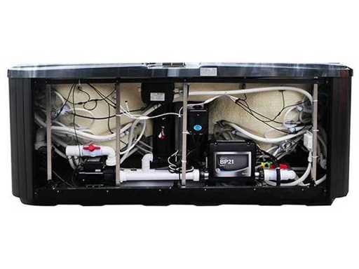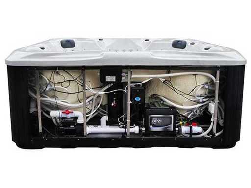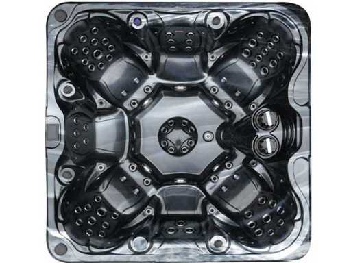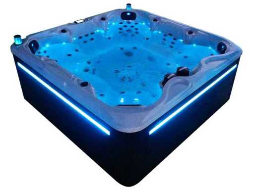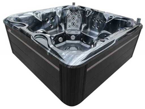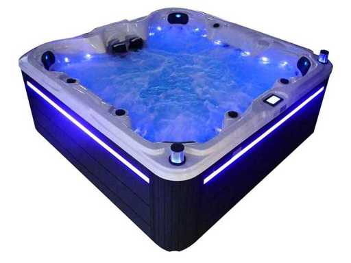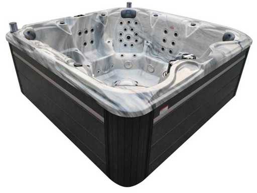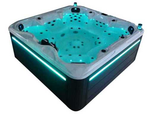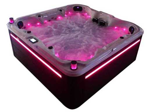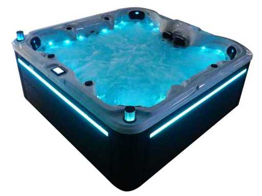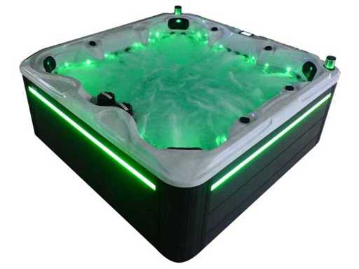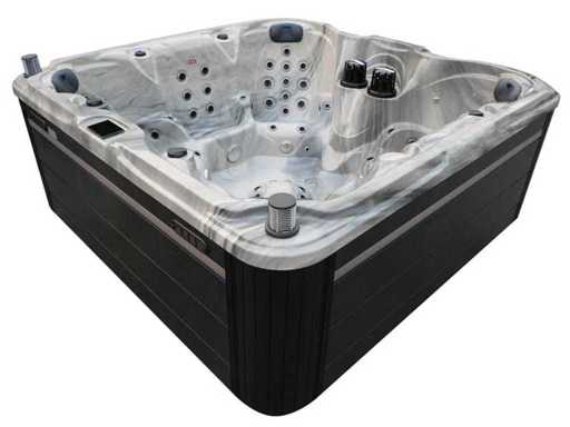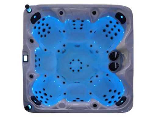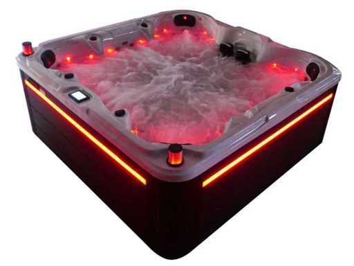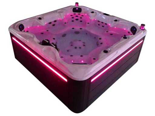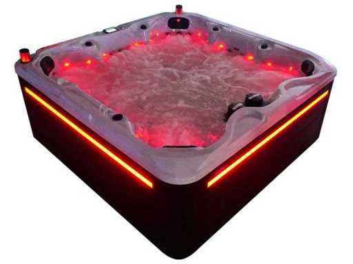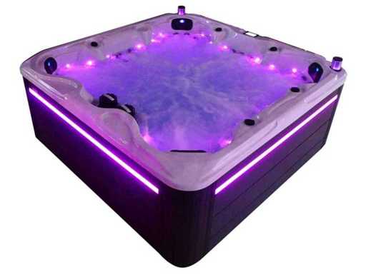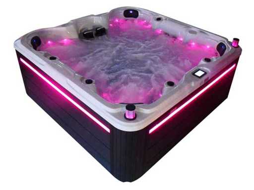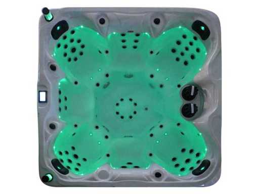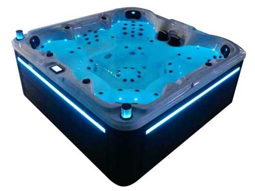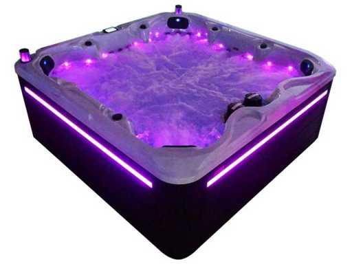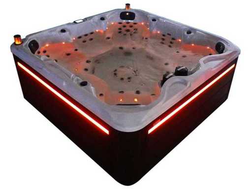 Besturing balboa (Balboa BP21 computer + nieuwste Spa touch 3 display), Balboa heater (3000 watt), Balboa wifi (voor besturing op afstand met de telefoon/tablet), Balboa bluetooth audio, 2 popup speakers met ledverlichting, Subwoofer, kunststof onderhoudsvrije ombouw met ledverlichting rondom in de zijpanelen, 4 massage pompen (1* 3pk, 2* 2pk en 1* 400 watt luchtpomp ), 24h circulatiepomp (0,5pk), 7 zitplaatsen (4 plaatsen voorzien van hoofdkussen), dikke (zwarte) afdek cover inclusief, totaal 100 rvs stainless steel RVS jets waarvan 12 luchtjets met ledverlichting (diverse maten en verschillende hydro stralen), extra nek en voet massage jets, vorst beveiliging, ozone desinfectie systeem 50mg/h, diverse leds (34 stuks) verlichting langs de waterrand, aroma feeder, diverse regelknoppen om de de kracht en de verdeling naar de jets te regelen, 2x oppervlakte en reinigingsfilter, kuip extra dikke foam isolatie (minimaal 45mm) + extra isolatie aan de buitenwanden met folie + 5mm dikke isolatie op de PVC gesloten bdem, waterafvoer, inclusief trapje, Aluminium frame (zeer sterk en roest bestendig) deze spa zit vol met alle mogelijk bestelbare opties, dit betreft een nieuw product in verpakking. De spa kan zowel op 220volt als 380volt worden aangesloten (27a of 41a).
