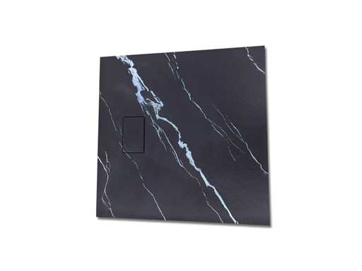 smc leisteen douchebak, kleurzwart marmer, materiaal leisteen toplaag met ruwe structuur(anit slip bodem) en smc (sheet molding compound) met hars, glasvezel en steenpoeder, voorzien van strak verwerkte afvoer in de bak - compleet geleverd met stankafsluiter/sifon - bevestiging materiaal, dun en strak design - universeel toepasbaar voor iedere douchewand of douchecabine -