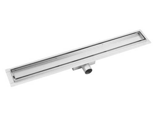 douchedrain met tegelrooster, type inbouw, materiaal 304 rvs, kleur geborsteld rvs, afmetingen bxdxh diverse breedtes 80,90,100,110,120x7x7cm (gewenste breedte lengte aangeven op de afhaaldag), voorzien van plaatrooster welke tweezeijdig te gebruiken is (als rooster in zelfde kleur of omgedraaid als tegelinleg), 20 mm rand rondom voor makkelijke installatie voor tegeloverlapping. flens (universele aansluiting), uitneembare sifon, waterdicht membraan, uitneembaar haarfilter, in hoogte verstelbare beugels, pe aansluitmof van 40 naar 50mm