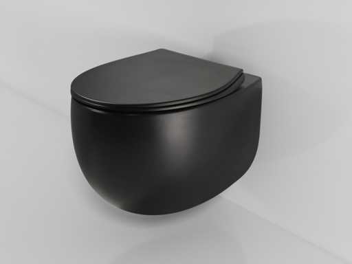 afmetingen lxbxh 50x37x36cm, materiaal keramiek en kunststof, kleur mat zwart, toiletbril softclose met deksel, afvoer p-trap, gewicht 30 kg, rimless flushing (geen spoelrand), compleet geleverd met bevestigings materiaal, universeel toepasbaar op ieder inbouwreservoir, quick release deksel