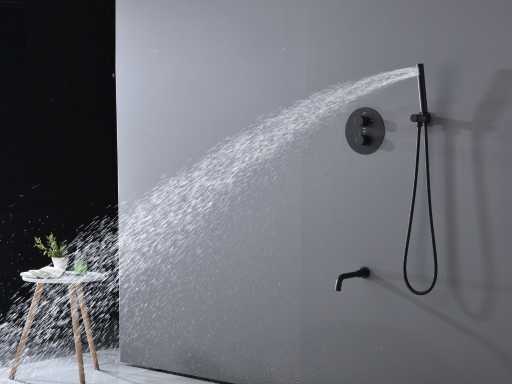 materiaal messing, , messing, voorzien van badkraanuitloop, douchekop met kunststof wateruitlopen om gemakkelijk kalkaanslag te verwijderen, douchekop kantel en draaibaar, inclusief inbouwbox voor eenvoudige installatie, set wordt geleverd met zowel een muurstang als een plafond stang