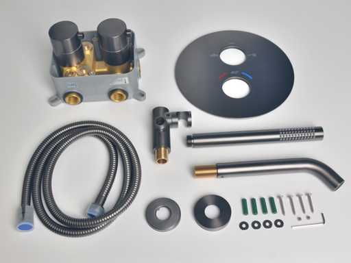 Voorzien van: thermostaatkraan. Inbouwbox voor eenvoudige installatie. Afwerkplaat met aanduiding. 19 cm badkraan uitloop en aansluitmateriaal