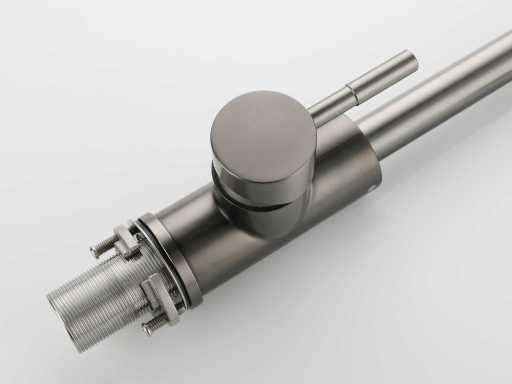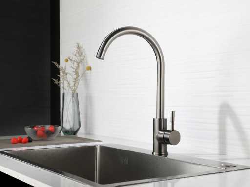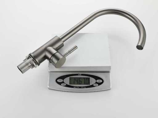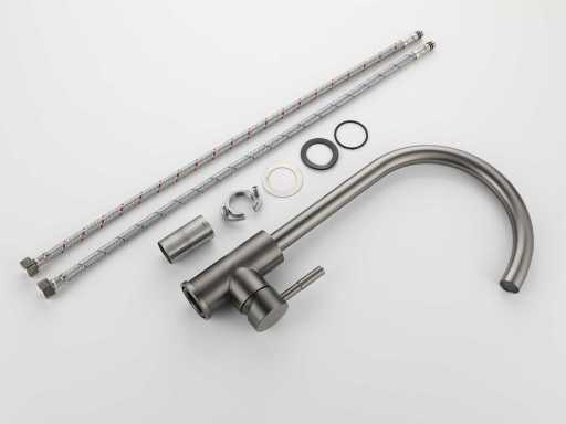 Kleurkeuze Mat zwart of geborsteld goud, materiaal 304 rvs, kleur mat zwart, hoogte 37 cm, gewicht 2 kg, voorzien van uitloop 360 graden draaibaar, waterslangen met aansluitmateriaal