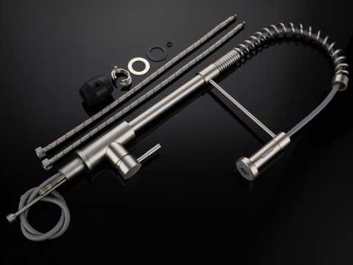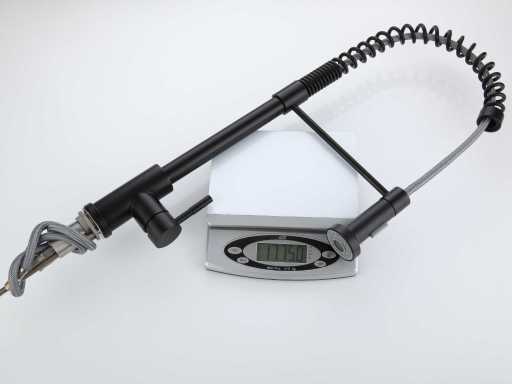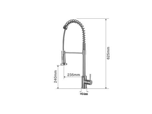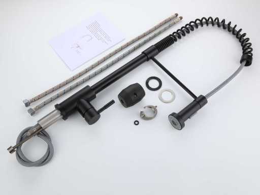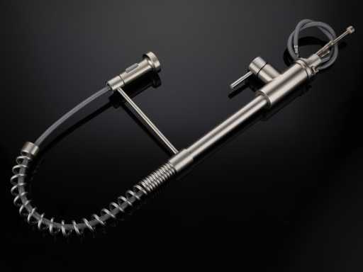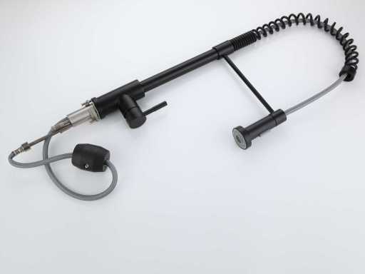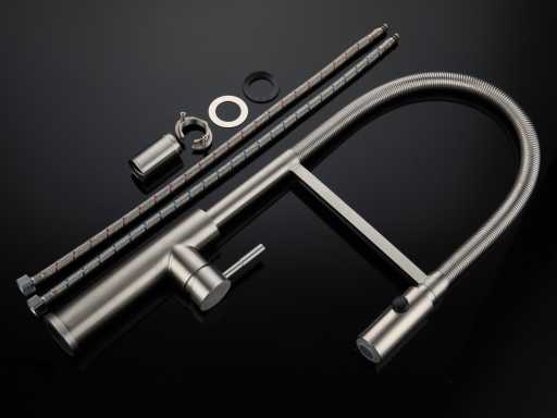 Kleurkeuze geborsteld RVS of Mat zwart (keuze graag aangeven per email op info@mawialux.nl), materiaal 304rvs, hoogte 63 cm, gewicht 2,5 kg, voorzien van uitrekbare slang, sproeikop met 2 functies, uitloop 360 graden draaibaar, waterslangen met aansluitmateriaal