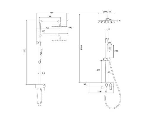 Douchekop: 25 x 25 cm doorsnede kantel/draaibaar van RVS.