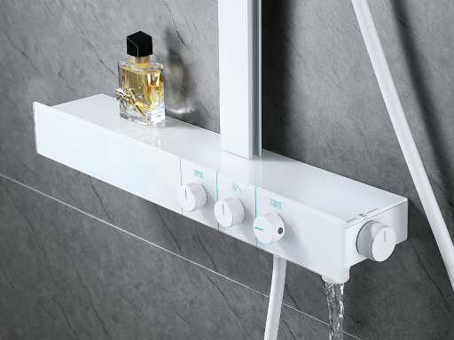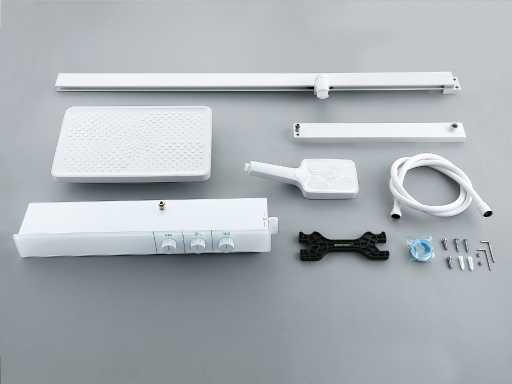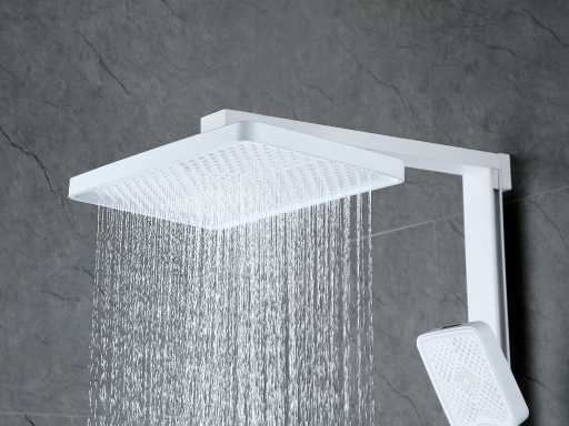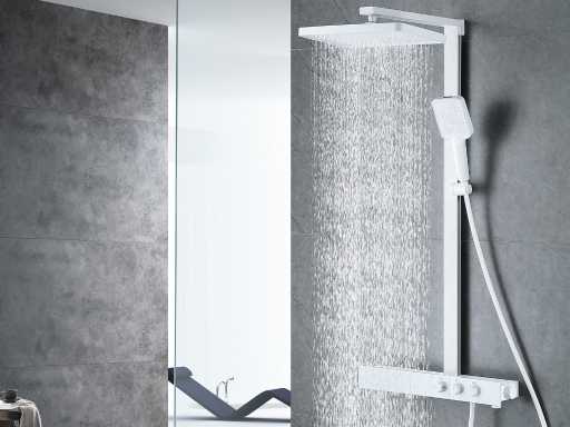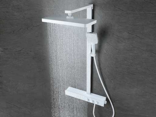 thermostaatkraan, binnenwerk keramisch, douchekop 36x23 cm doorsnede kantel/draaibaar, handouche verstelbaar met doucheslang en 2 functies, 3 draaiknoppen voor regelen gewenste waterfunctie, badkraan uitloop, h.o.h. afstand van 150 mm