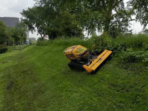Op afstand bestuurbare werktuigdrager / maaier. Geschikt voor hellingen tot 55 graden.