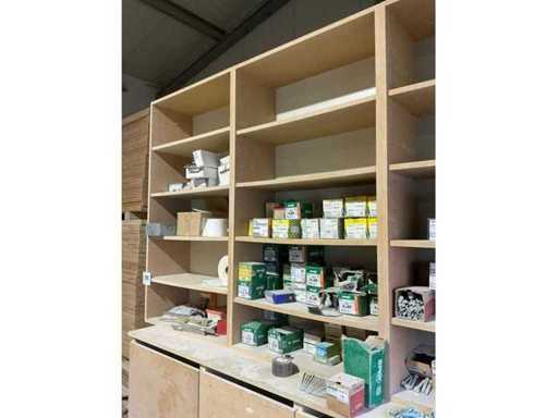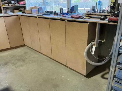 Voorzien van 8 deuren, 20 open opbergvakken en 9 lades, totale afmeting: 320x350x250cm, demonteerbaar, zonder inhoud