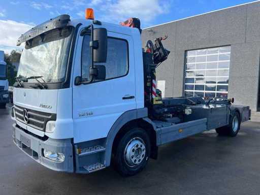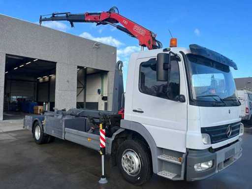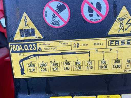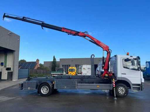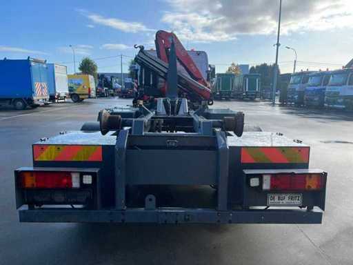 Kraan Fassi F80 3x hydraulisch 5de en 6de functie Lastentabel: 3.600kg op 2m 3.200kg op 2.25m 1.930kg op 3.90m 1.300kg op 5.60m 940kg op 7.30m 705kg op 9.10m Containersysteem 14T voor containers tot circa 5.20m Materiaalkoffers onderaan chassis Opbouw volledig van 2014! Zowel kraan als containersysteem