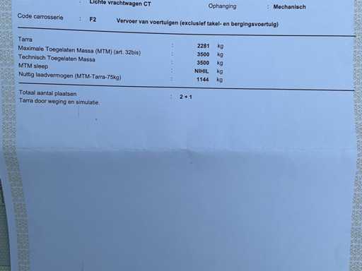 Zeer nette Mercedes Sprinter lichte vracht, uitgerust als autotransporter met aluminium laadplatform. Voorzien van krachtige Husar 13.500 lbs lier met afstandsbediening, recent gekeurd, technisch volledig in orde en direct inzetbaar. MTM 3.500 kg, laadvermogen ca. 1.144 kg. Motor start en loopt mooi, interieur proper en verzorgd. Ideaal voor vervoer van voertuigen, depannage of handel. Geeft soms fout op NOx sensor.