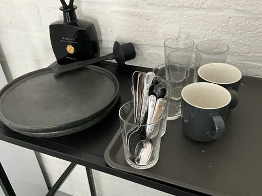 Compleet met 2 borden, 6 glazen en 2 koffietenttassen en enige koffielepels