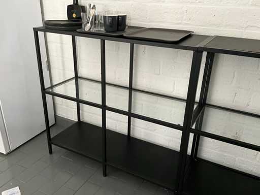 Metalen opbergrekje voorzien van 3 leggers waaronder 1 in glas (2x)
