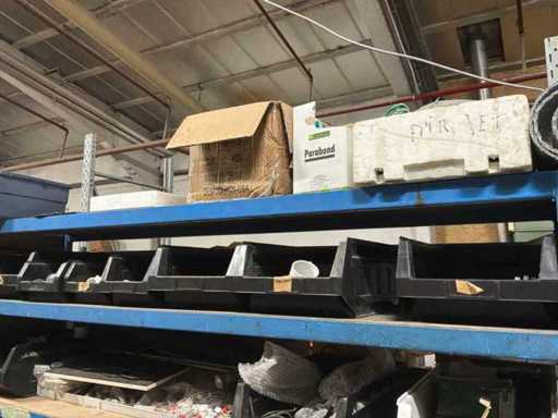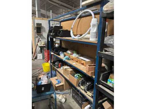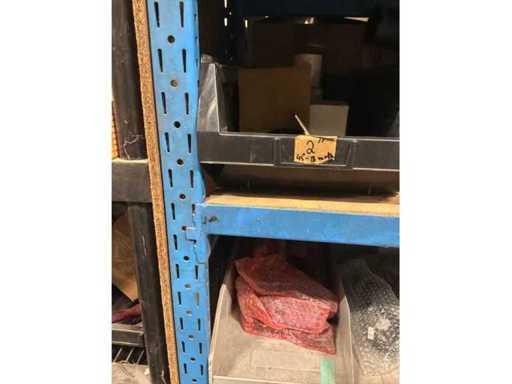 1 rek niet demonteerbaar van 213 x 40 x 200 cm, 1 Magazijnrek van 90 x 45 x 180 cm, 1 demonteerbaar rek met 2 staanders van 45 x 200 cm en 12 leggers met lengte van 200 cm