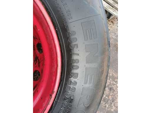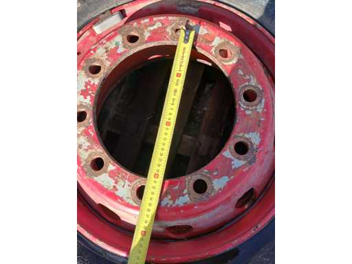 - Velg: staal, 10-bouts (steekcirkel ± 41 cm) - Band in goede staat, egaal profiel - Geschikt voor vrachtwagen of oplegger - Staat: