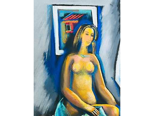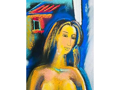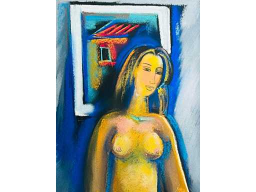 Originele pastel - gemonteerd in passe-partout (40x50 cm) - klaar voor inlijsting - galerieprijs: 550 euro