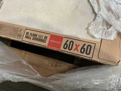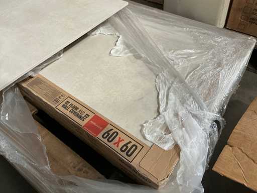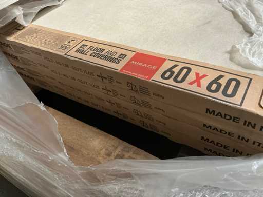 Voor vloer en wand. Liggende in 10 dozen met elk 3 tegels. Totaal : 10 m2.