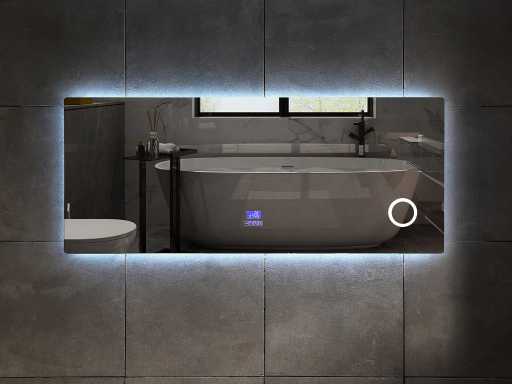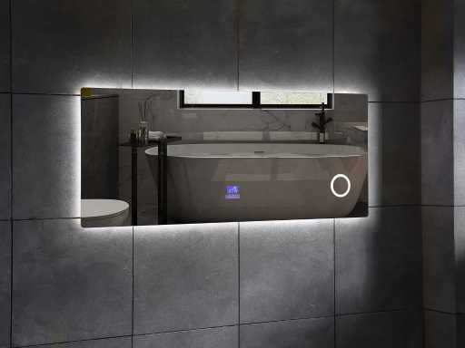Afmetingen bxh 80x70cm of 100x70cm of 120x70cm of 140x70cm of of bxh 160x70cm, (u heeft de keuze uit 1 van deze afmetingen, uw keuze graag doormailen op info@mawialux.nl direct na sluiting van de veiling) led spiegel met verwarming/bluetooth/speaker/klok en vergrootglas, Verwarming Ja, Bediening one-touch (voor heater, verlichting, bluetooth en instellingen), Verlichting rondom aan de achterkant met 3 verstelbare kleuren led 3000/4500/6000K led-dioden(dimbaar) (geel/blauw/wit licht), Voorzien van digitaal display, geïntegreerde vergrotingsspiegel van 10cm doorsnede met ledverlichting(vergroot 3x), bluetooth met speaker, digitale klok, digitale temperatuur aanduiding, 220volt stekker(plug and play), verwarming ter voorkoming van condens, 1.5mm kopervrij met explosion-proof laag met dezelfde functie als gehard glas, Conditie: Nieuw, Bijzonderheden 2 jaar garantie, hoge kwaliteit, zeer exclusieve spiegel met veel opties