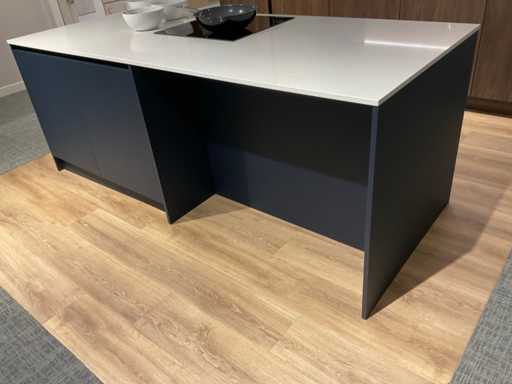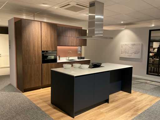 MK Blue Ripasso Eiland showroomkeuken met kastenwand