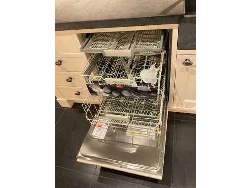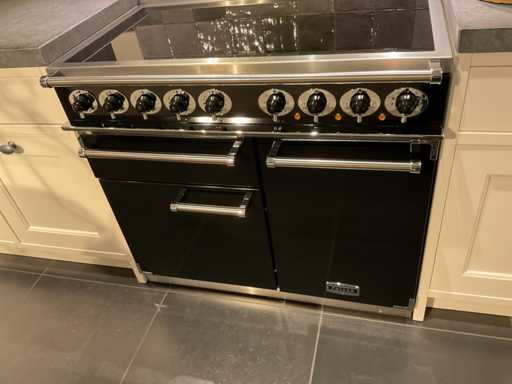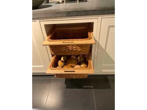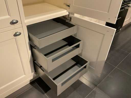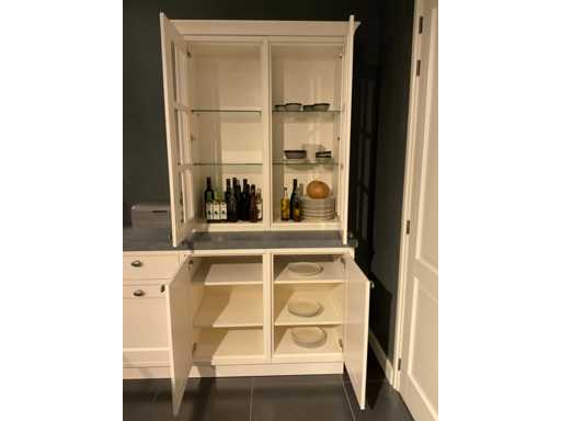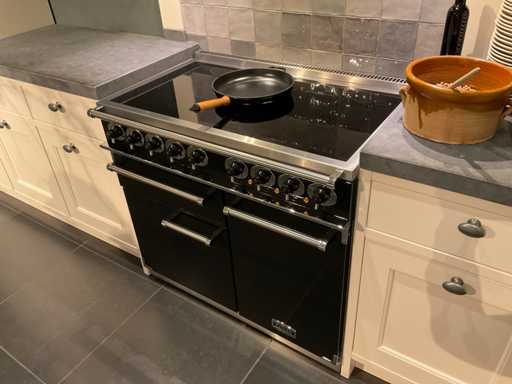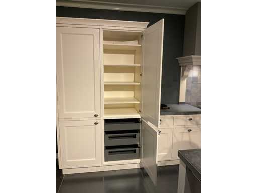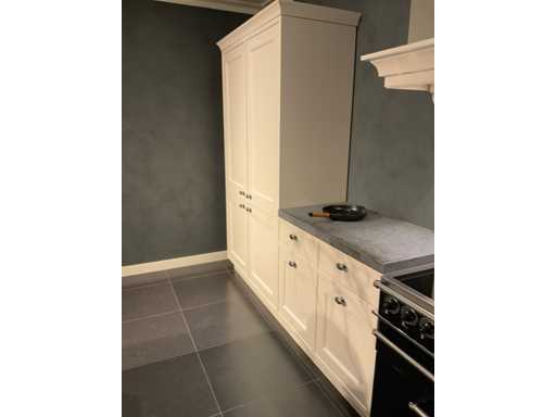 Spoeleiland indeling: 5 onderkasten; 3 ladenkasten; waarvan 1 met 2 binnenladen; 2 uittrekmanden; 2 relingstang; Miele inbouw vaatwasser met besteklade; type G5260SCVI; 14 couverts; wandopstelling indeling: 2 onderkasten met 2 serviesopzetkasten; 4 ladenkasten elk met binnenlade en een frontlade; 2 hoge kasten; Falcon 5-zone inductiefornuis; type 1000de luxe Induction; 99 cm breed; inhoud oven 82 liter; Novy inbouw afzuigunit; type 820; met schouwombouw; Bauknecht Koelvriescombinatie; type KGIS20F2P; inhoud 227/79 liter; Scan de QR code voor meer informatie; LET OP: door koper zelf ter plaatse nog te demonteren; zonder de getoonde accessoires